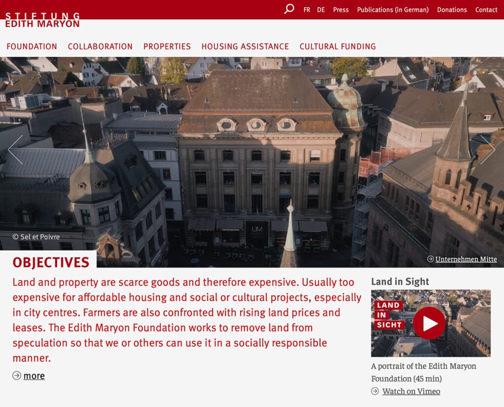 La Fundación Edith Maryon es una entidad sin ánimo de lucro establecida en Basilea, Suiza, desde hace 34 años, que tiene como misión principal retirar terrenos y propiedades del mercado especulativo para que otros puedan destinarlos a proyectos socialmente responsables.